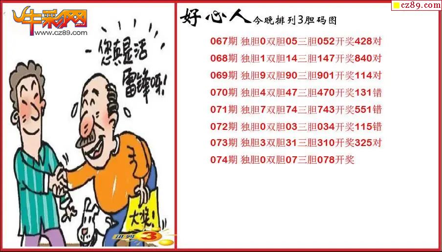 首页 > 排列3图谜 > 2026074期P3好心人胆码图