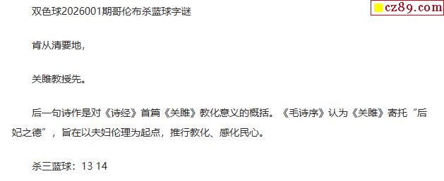 26年福彩双色球001期 哥伦布一句杀蓝球字谜