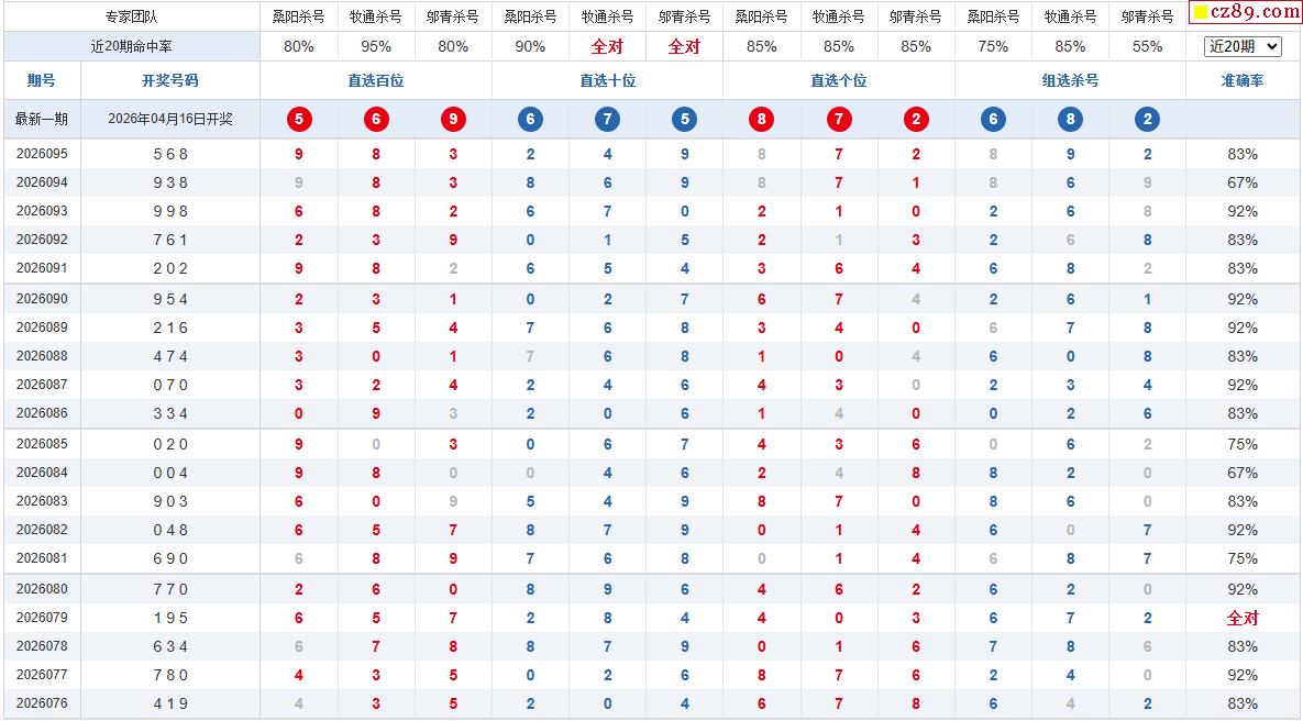 26年096期彩宝贝专家体彩P3杀号定码图表