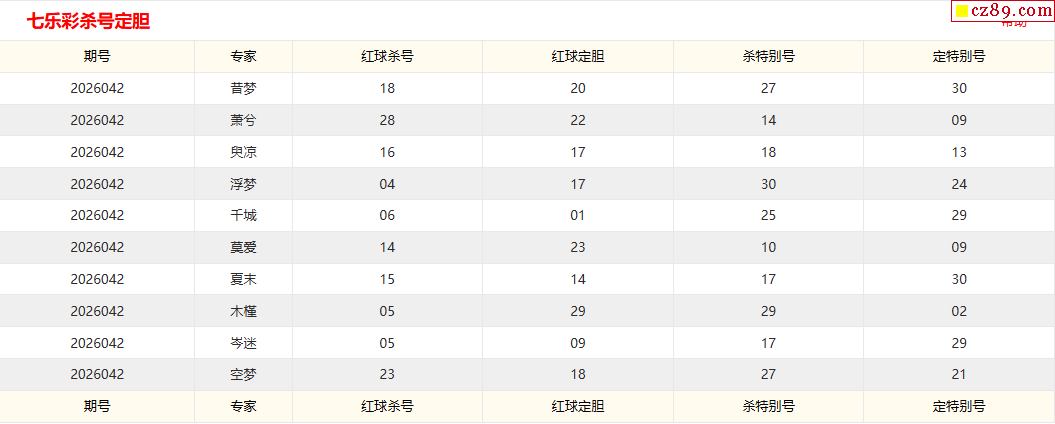 七乐彩042期 彩宝贝专家杀号码预测图表